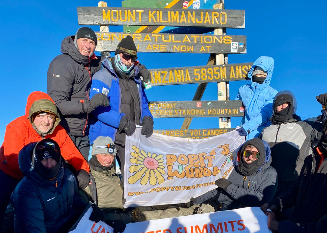 Our team, made up of Poppy’s Dad Peter Eagle, brother Oliver Eagle, and close family friends, Ted Boyle, Phil Ingamells, Paul Reid and Tom Reid, backed up by Craig Rogers and Luke Beckley from Uncharted Summits and fellow adventurer Nozomi Itani. Together faced the some of the hardest challenges, and worst weather they had ever witnessed in their lives, deep into freezing temperatures and 50mph+ winds on the Summit Night itself, but, with grit and determination, and a team bond that could not be broken, they achieved their goal of reaching the summit and waving the Poppy’s Light Foundation Flag at the highest point in Africa… and we couldn’t be prouder of them
